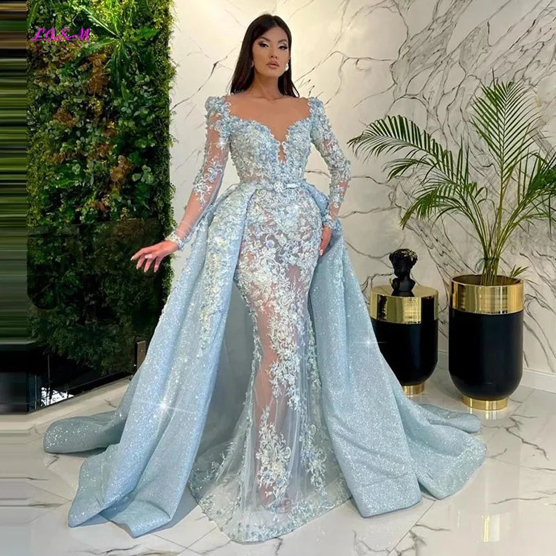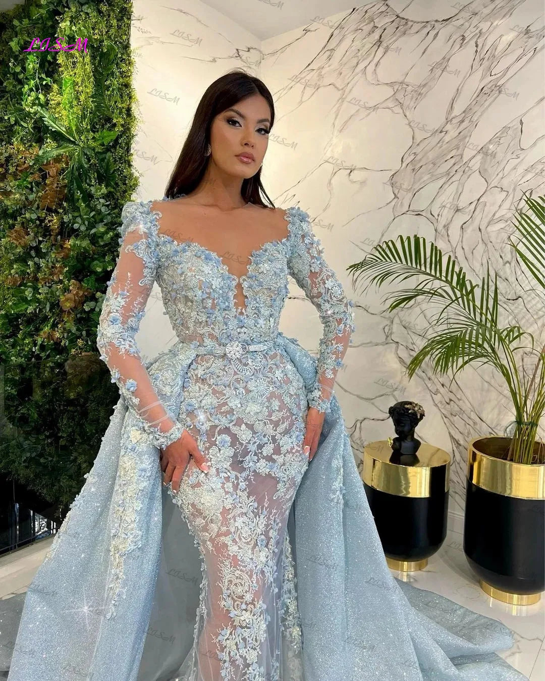 Luxury Lace 3D Flowers Mermaid Dresses With Detachable Train