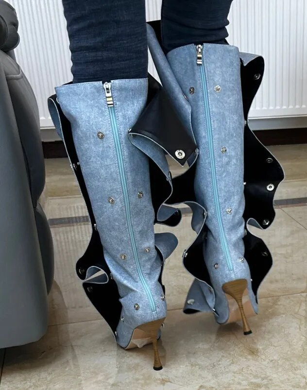 Knee-high Model Fashion Boots are sure to be a standout! At 8cm tall, their super high heel and pointed toe design make them the perfect pick for winter fashion. Choose your EU size with confidence, and effortlessly slip on and go! These boots will be your go-to look for that luxurious party this fall!
