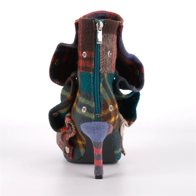 Step into the spotlight with these show-stopping plaid ankle booties that mean business. Featuring a cheeky peep toe and a 9cm heel, they're designed to turn heads and elongate your legs in one fabulous move. The sleek zip closure makes getting ready a breeze, while the true-to-size fit ensures you'll strut with confidence. Perfect for nights out, date nights, or whenever you want to add some serious sass to your outfit.
